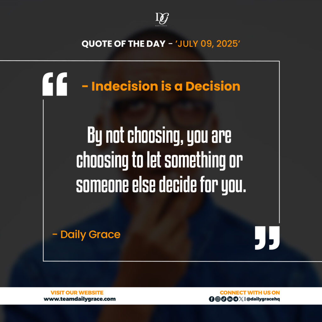 Indecision can feel safe. It looks neutral, but it’s a fear of failure. Fear of being wrong, fear of responsibility. But life doesn’t wait for your fear to settle. And neither does purpose. The truth is, you’ll never feel fully ready to choose. But even your delay is planting seeds that will grow into something.