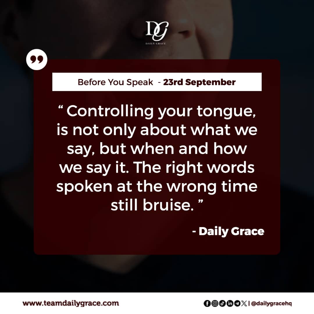 The truth is, it is not only about controlling what we say, but when and how we say it. The right words spoken at the wrong time still bruise. The right words spoken with the wrong tone still cut. Control is not silence alone, it is timing, tone, and tenderness. Think of communication as music: the notes matter, but so does the rhythm.