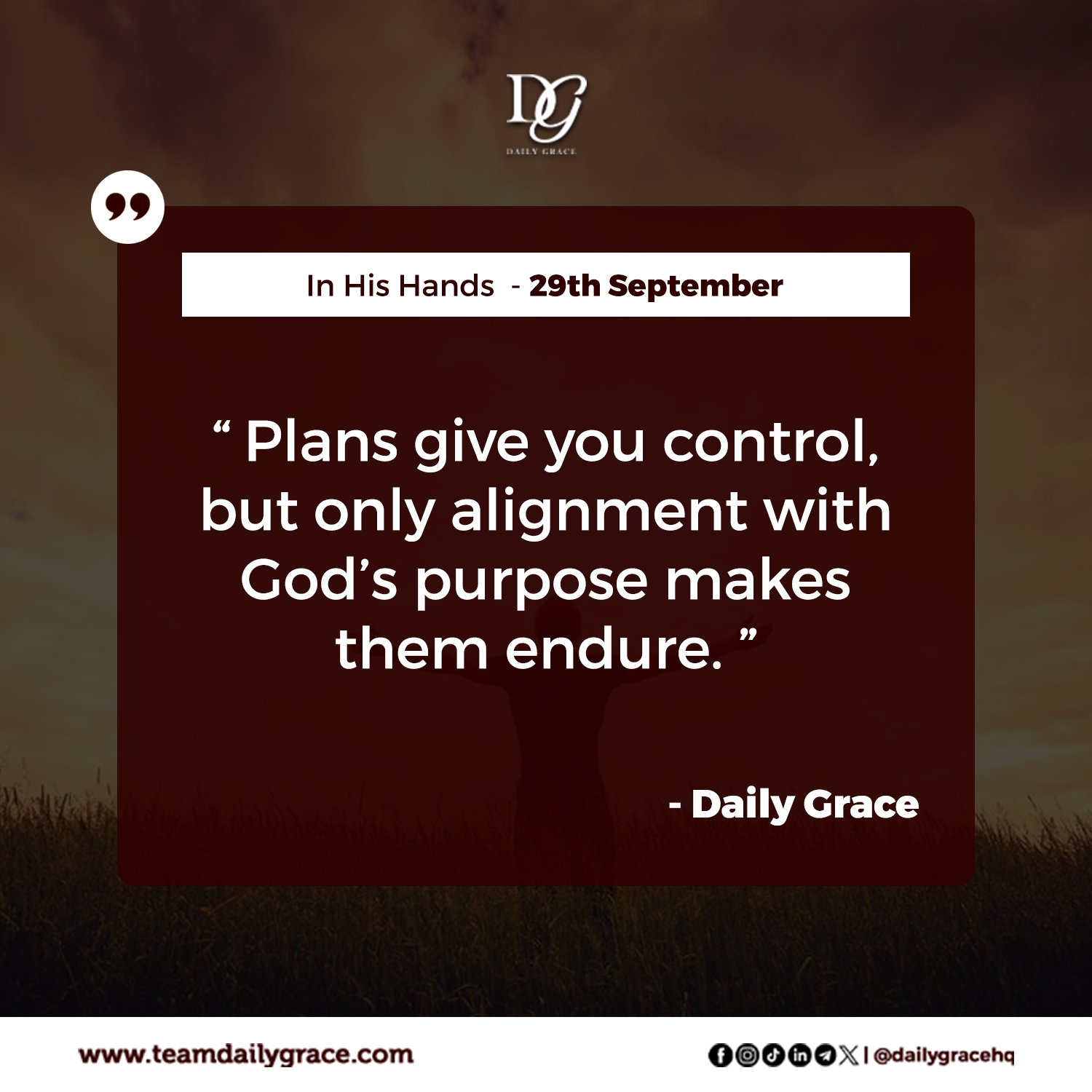 So, let your plans be aligned with God’s purpose. That shift takes you from anxiety to assurance, from control to surrender and from uncertainty to confidence, that no matter what twists come, your story is in the hands of the One who never fails.