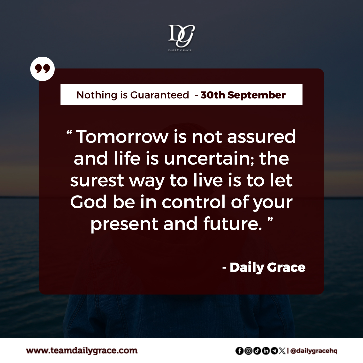 So, as much as tomorrow is uncertain, and as much as life may surprise you, remember this: there is no safer place to put your future than in God’s hands, and in the end, that is the surest way to truly live.
