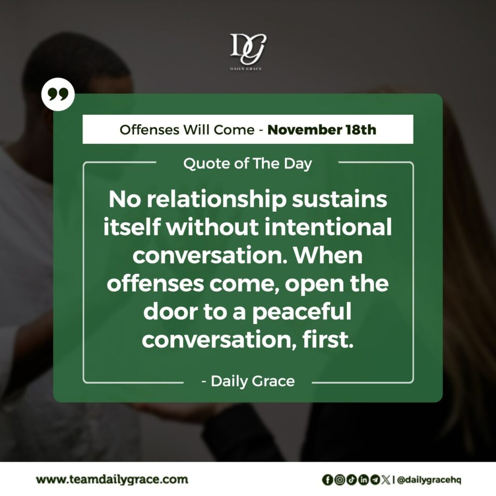 When the offense comes from an equal, maybe a friend, colleague, sibling, or partner, it tests the strength of the bond. Offense between equals can feel heavier because there is an expectation of understanding. But maturity teaches us not to assume motives.
