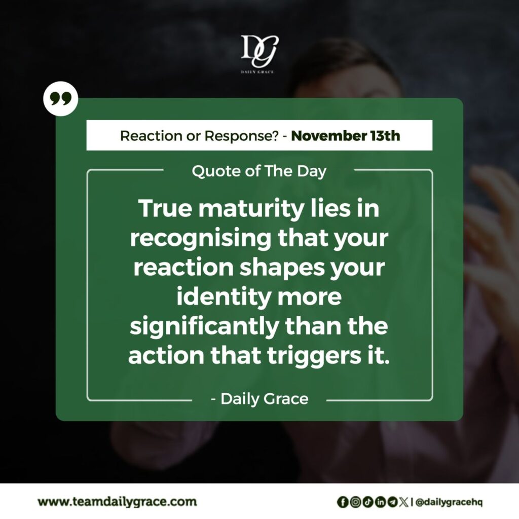 True maturity lies in recognising that your reaction shapes your identity more significantly than the action that triggers it. What you have control over is yourself, your words, your choices, and your responses. Each time you opt for calmness over chaos, patience over impulsivity, and grace over ego, you gradually gain wisdom, strength, and freedom.