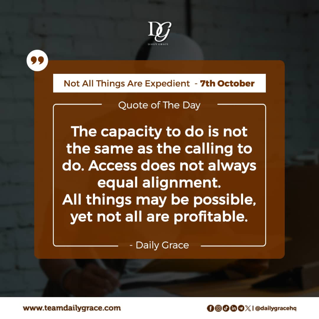 Honestly, our ability to do, doesn’t legitimise free will or access to make happen. All things are available to you, but not all things are expedient for you. So, what is justifiably important and aligned to your values and purpose in this season? Begin with that and let go of what’s not.